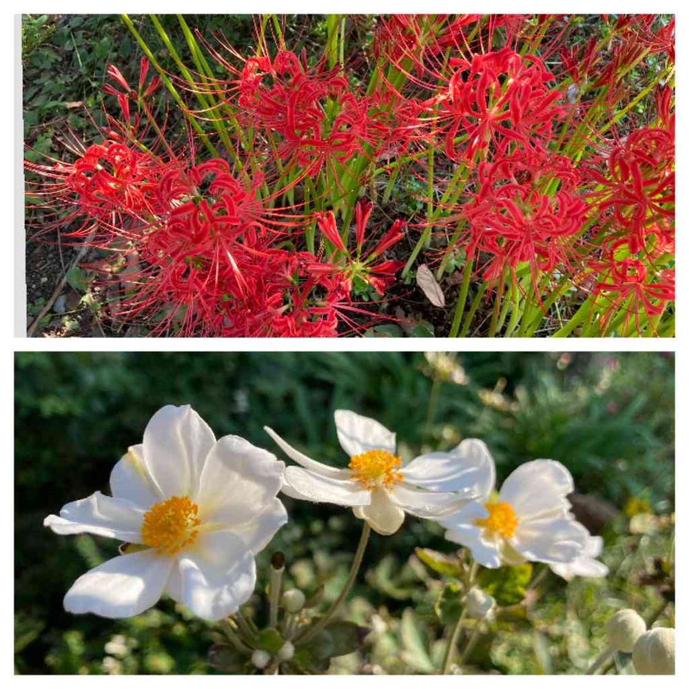 真っ赤な彼岸花と白いシュウメイギク💕 どちらも秋を告げるお花🙌