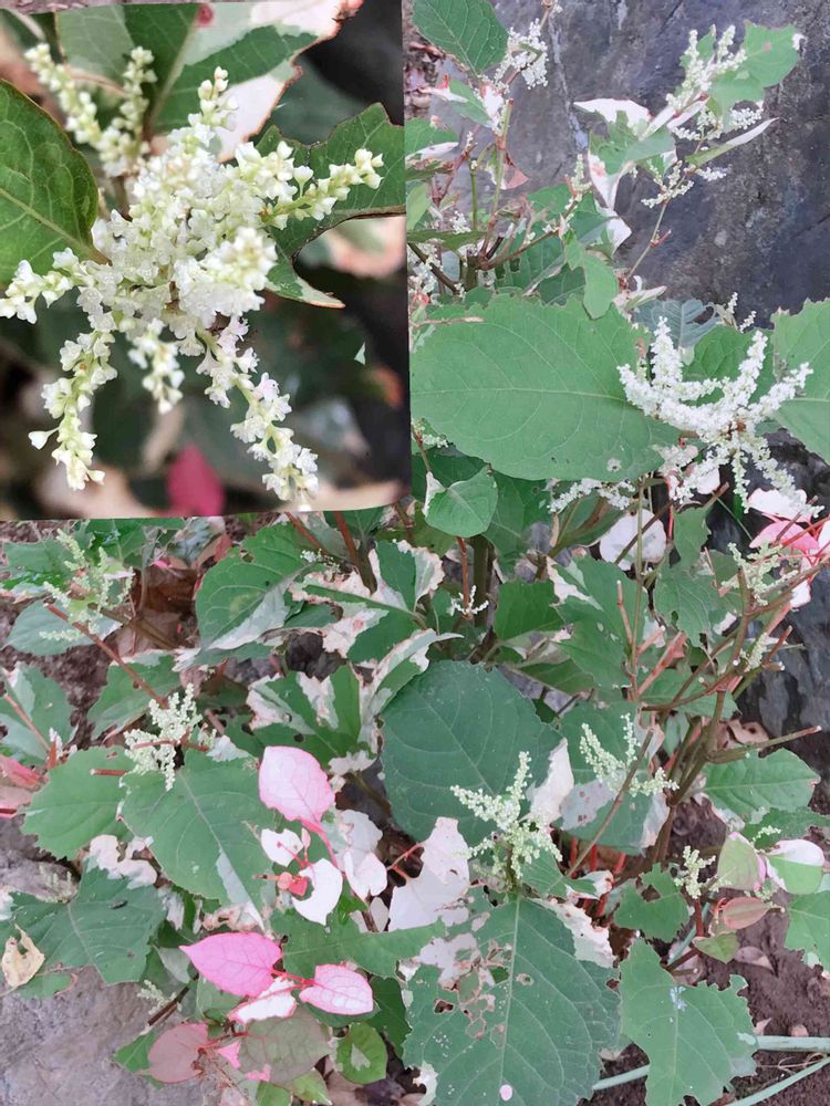 鉢植えの、斑入りの、イタドリ花が咲きました。