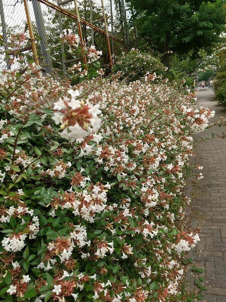 小学校の校庭を取り囲んいるアベリアが今とても綺麗です🌿🌿🌿