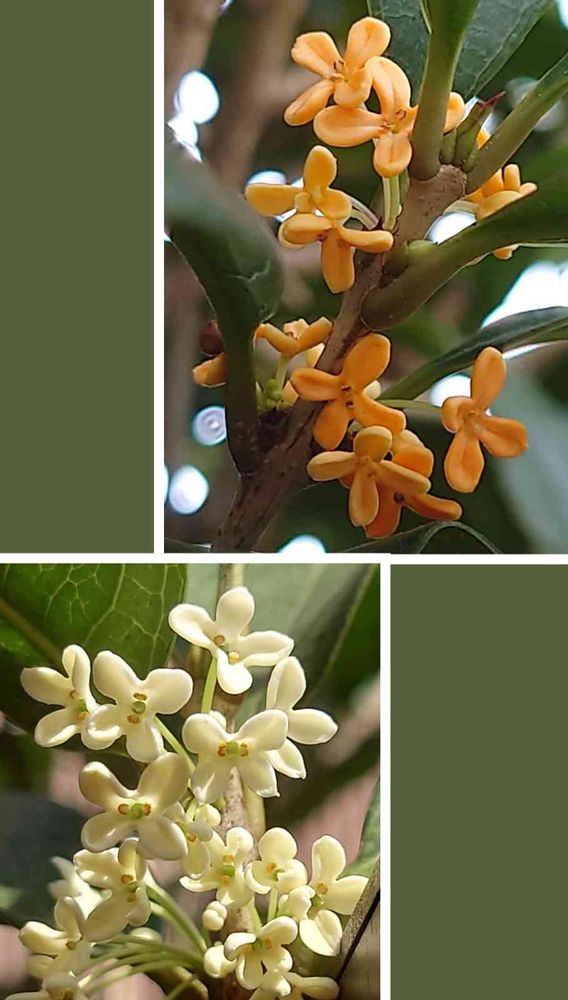 オレンジ色と白いキンモクセイ、ギンモクセイの花、秋の素敵な香りです✨✨