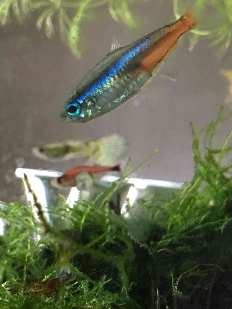 MIXチェリーシュリンプ君を眺めていたら超デッカくなったネオンテトラ君がじわじわと近づいて来て停止❗️❗️❗️