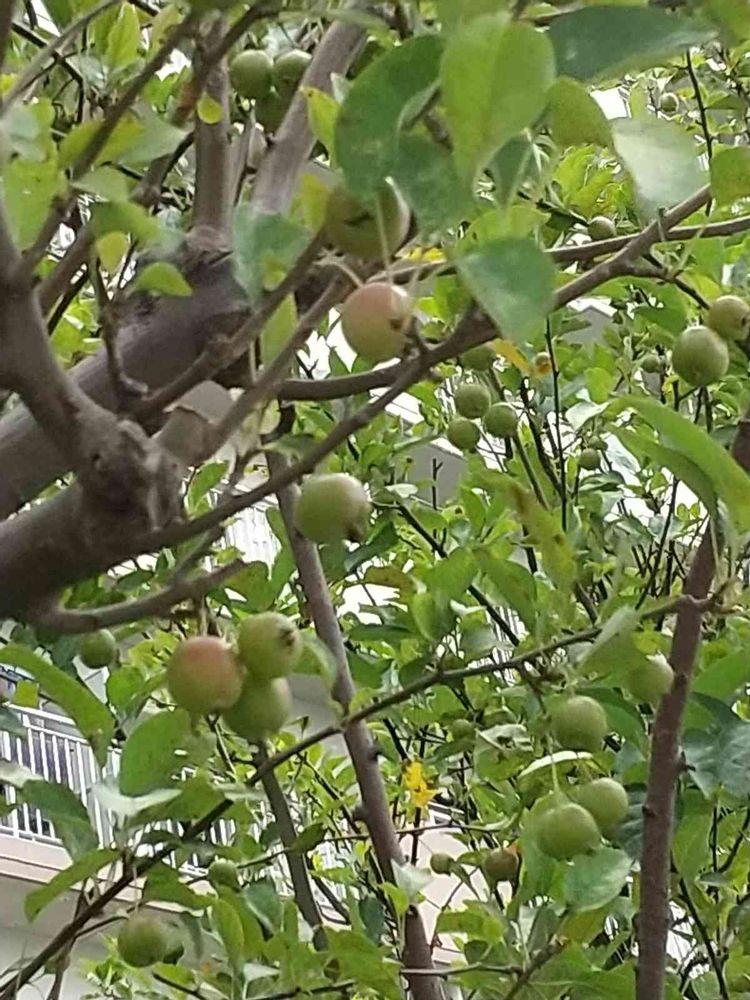 姫リンゴ盆栽でも見た事ありますが、こんなに大きな木は見た事無いんです❣️赤くなったら更にかわいいでしょうネェ、お庭ですか?