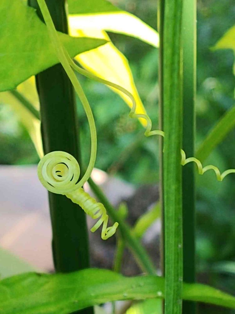 つるを延ばして、どこかをつかみたかったんだけど、力尽きたのかな?