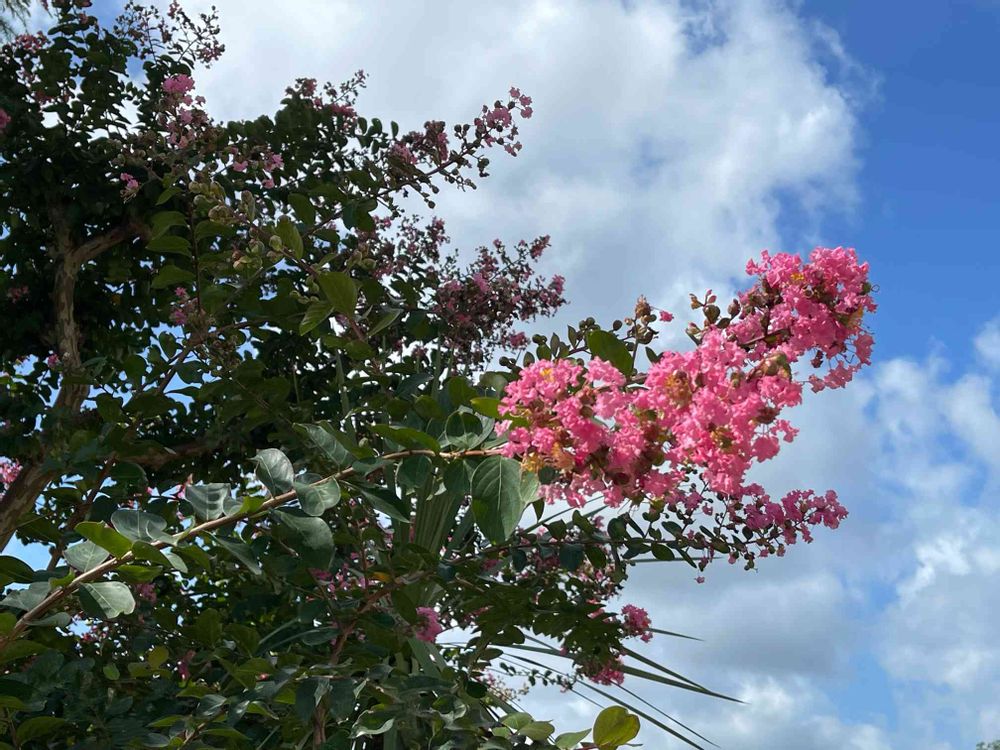 晴れた空に映えて咲く百日紅✨♫