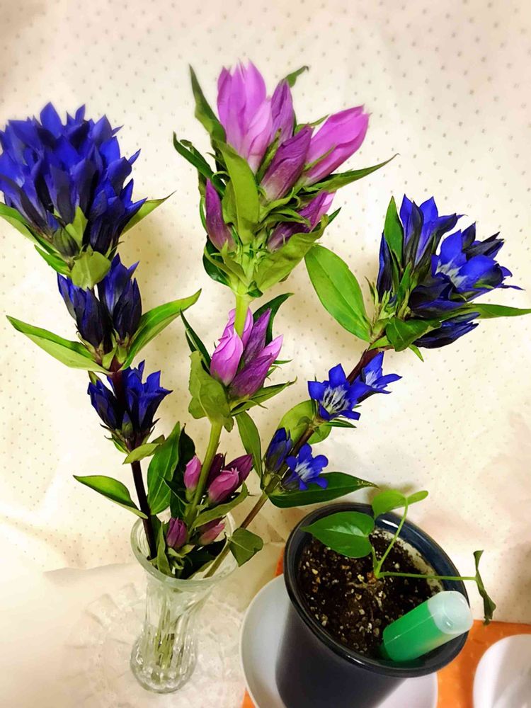 2色のリンドウを一緒に花瓶に飾って思った事。