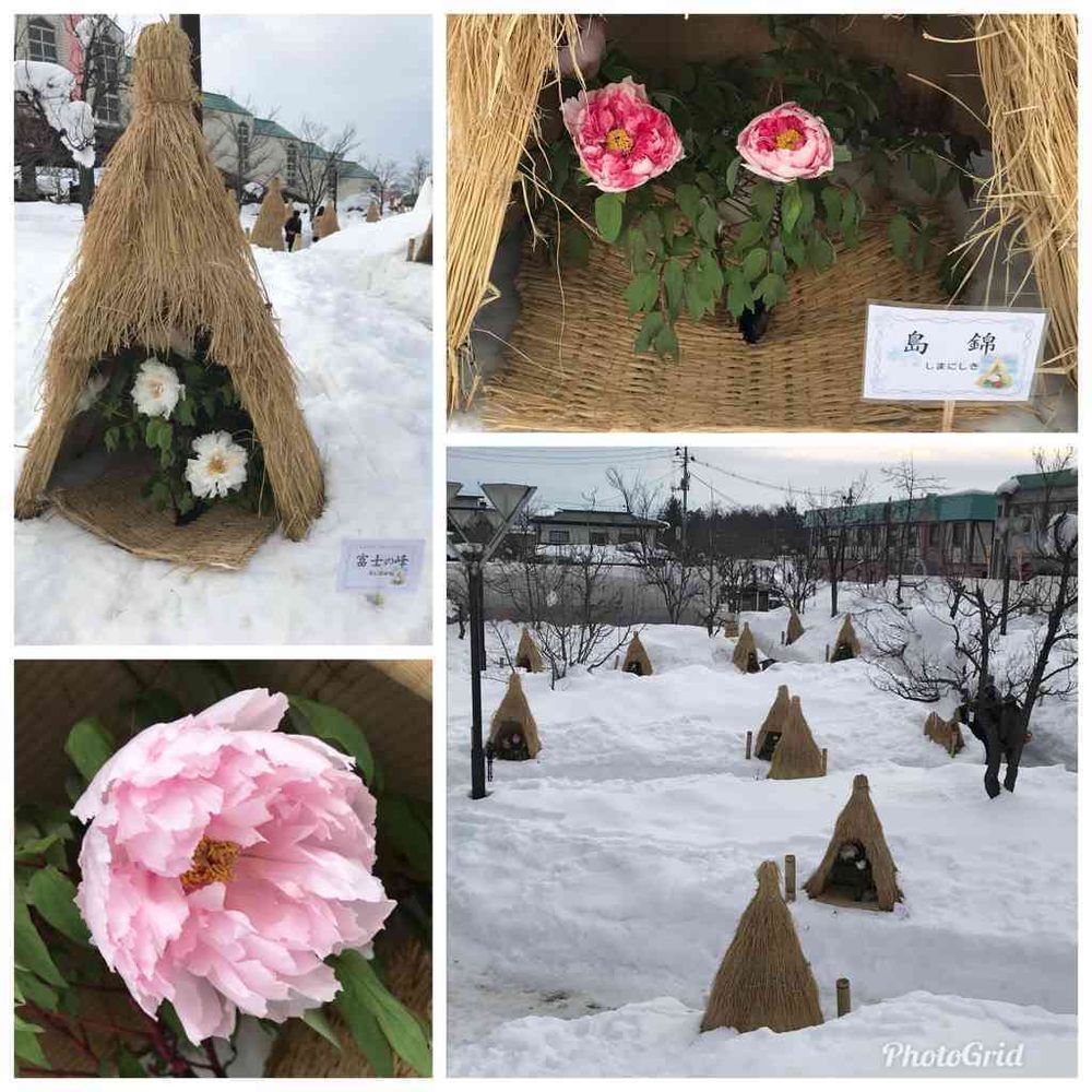 こもを被った寒牡丹は可愛いですよね😍まわりが雪なのがさらに素敵です🎶
