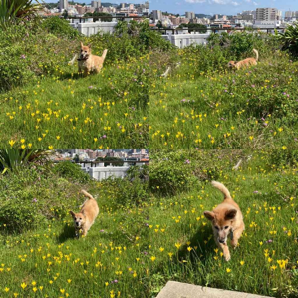 いつものコースで〜とありますが、右上の写真を撮る前はあの場所でウン○の用を足し終わりスッキリした後駆けてくるのがいつものコースなんです😅可愛いでしょ💕