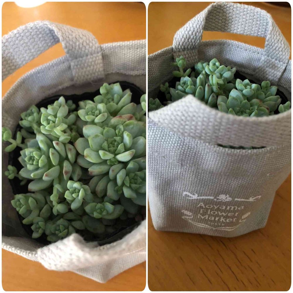 Aoyama Flower Marketで買った多肉植物。可愛い手提げに入ってる♪