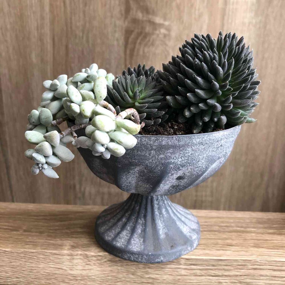 ユンナネンシスのブラックと デルトイデアの粉っぽい白さのコントラストが なかなか絵になる寄せ植え。満足なり。