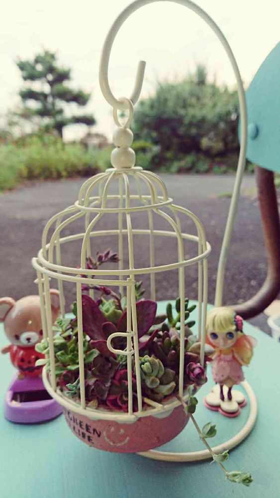 鳥かごにリメ缶合わせるアイデア最高ですね🎵
