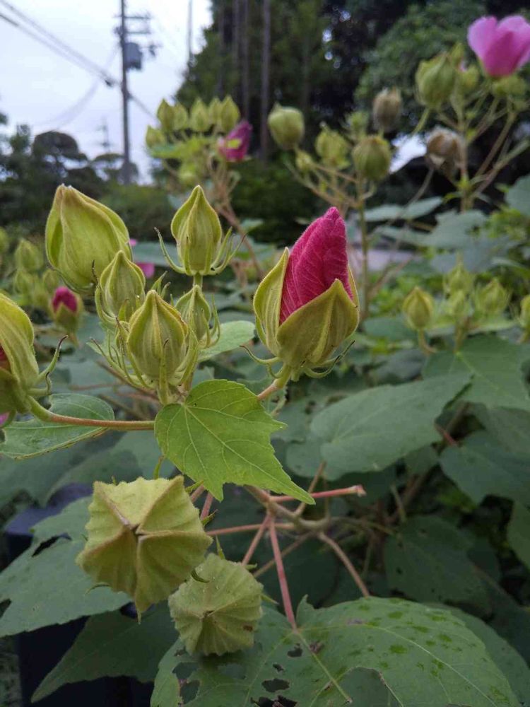 芙蓉って大好き!ピンクのお花と緑の🌿のコラが本当に美しいと感じられます…ねぇ…つぼみは…もっと赤くて…魅力的!