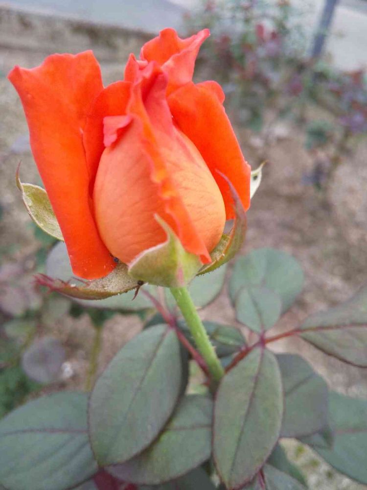 これは道を挟んだ畑のバラ…かろうじて…きれいに咲く準備してました…