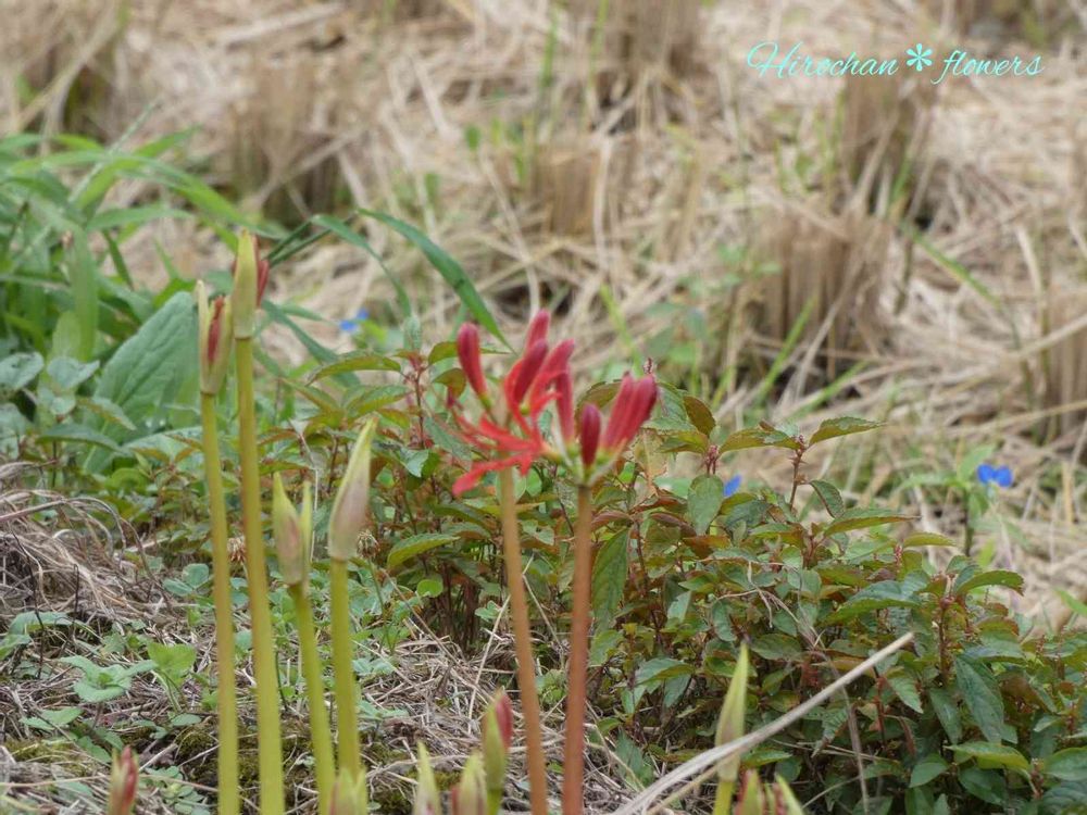 🌾稲刈りが 済んだ田んぼでは、ツユクサとこれから咲く彼岸花が あぜ道を飾ってくれます。😉