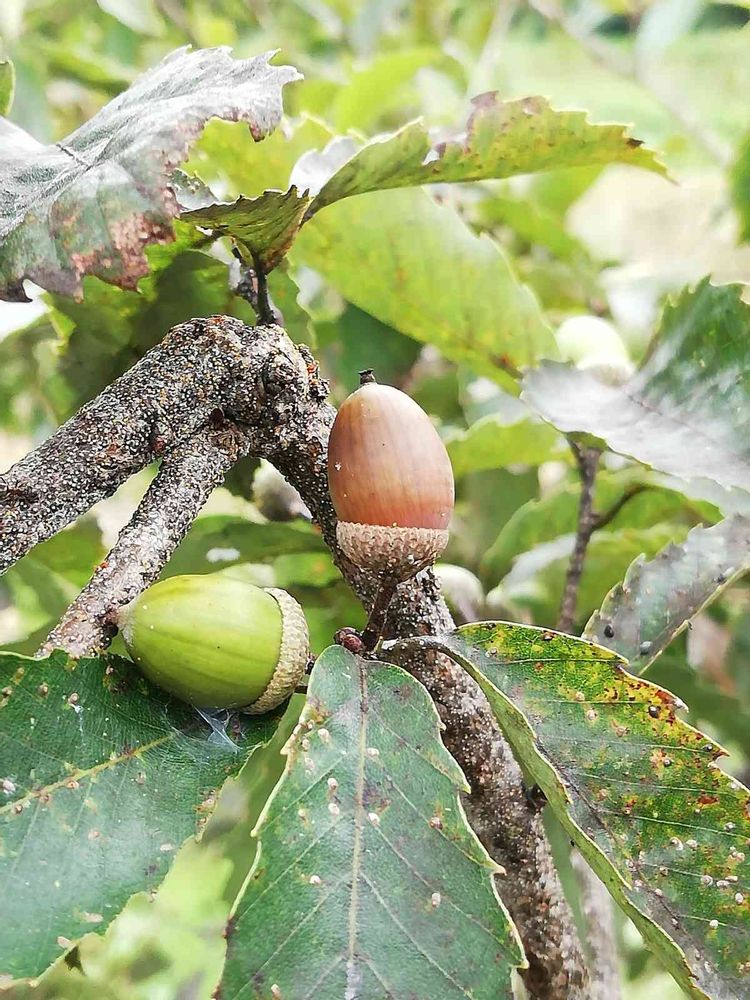 茶色と緑のドングリが一緒に実っているのは多分初めて見たかも。可愛いペアのお写真を拝見できて、ほっこりした気持ちになりました🥰