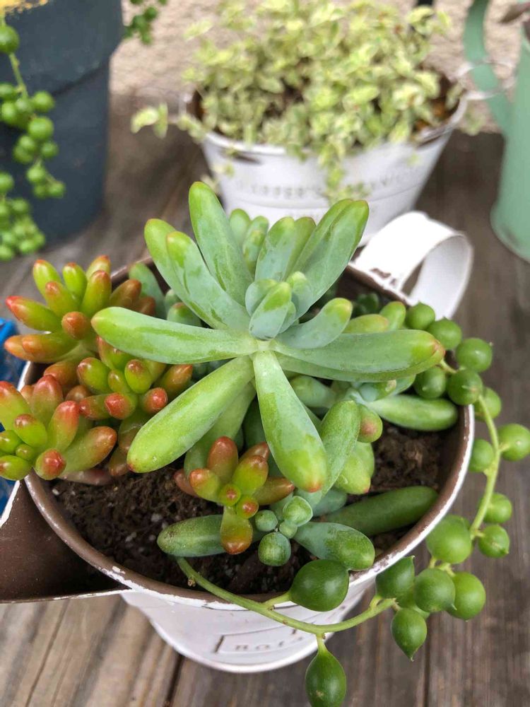 グリーンネックレスは、切った方が粒つぶが育つかもしれないらしく✂️したもの寄せ植えに入れました。