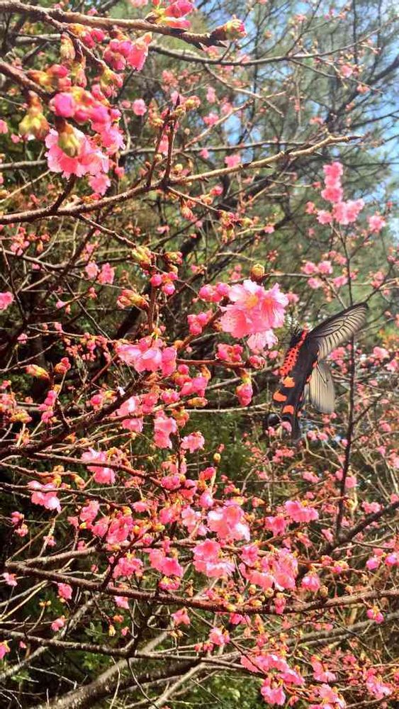 旅行に行った時に撮った緋寒桜。と蝶。
