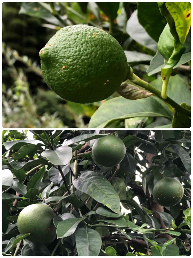 我が家のレモンとグレープフルーツ。レモンは去年、百個程実を付けたけど今年は一個💧豊作の翌年は不作みたいです😆