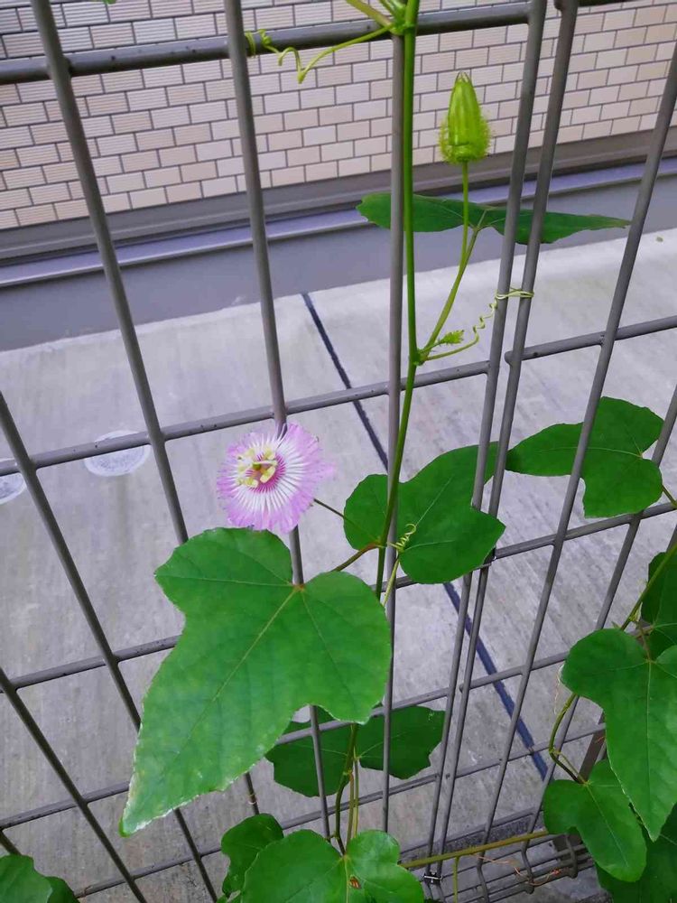 葉の形が朝顔に似ている…ウチの時計草は天狗の葉のように5枚に割れています。