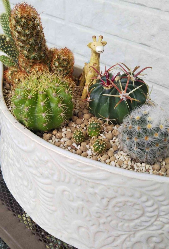 100均サボテン🌵の寄せ植えが窮屈そうになっていたので、陶芸で作った鉢に植え替えました😆🎶