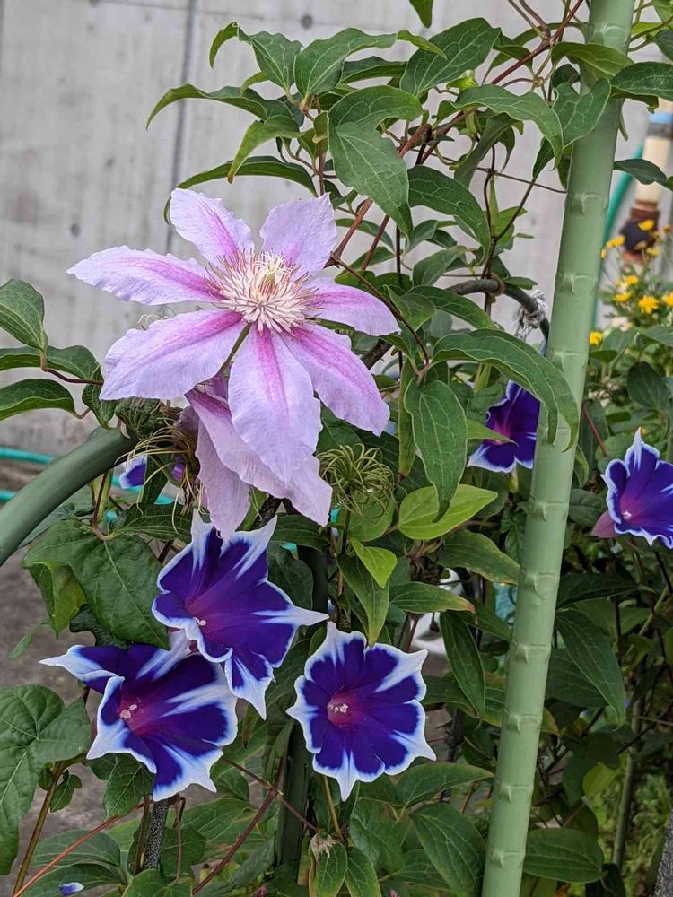 西洋朝顔と、クレマチスのコラボ、すごく綺麗ですね😄💕