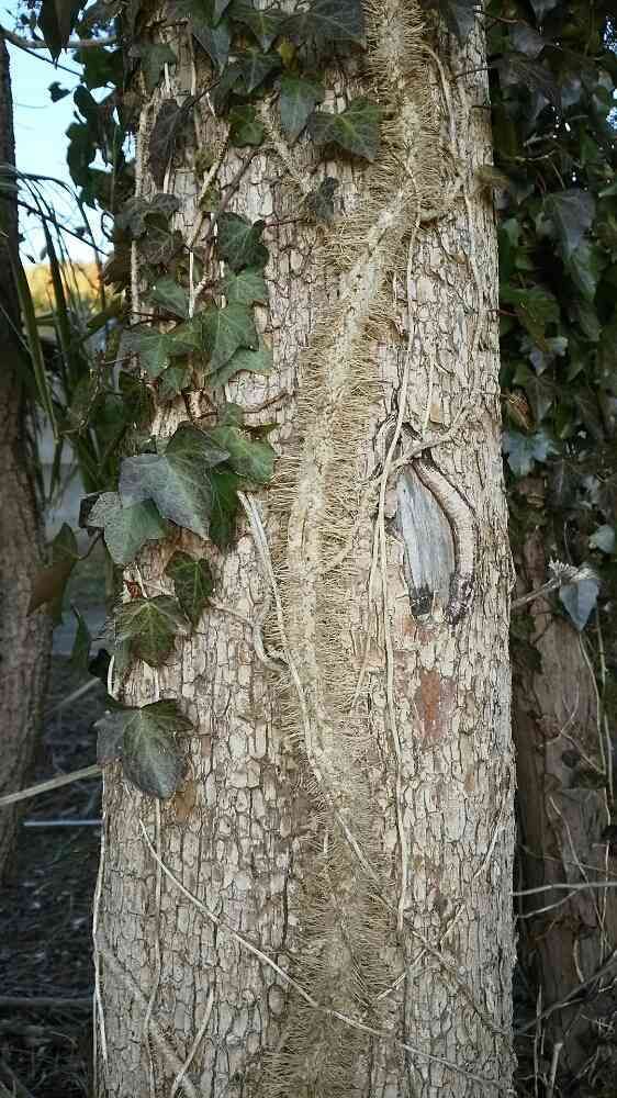 mi - naさん、木に登っている蔦の茎でしょう。栄養を取られそうで、コニファーの幹に登っている蔦の茎をよく剥がしたり、途中を✂️してましたが上に登ったところは、生きていました。生命力あります。