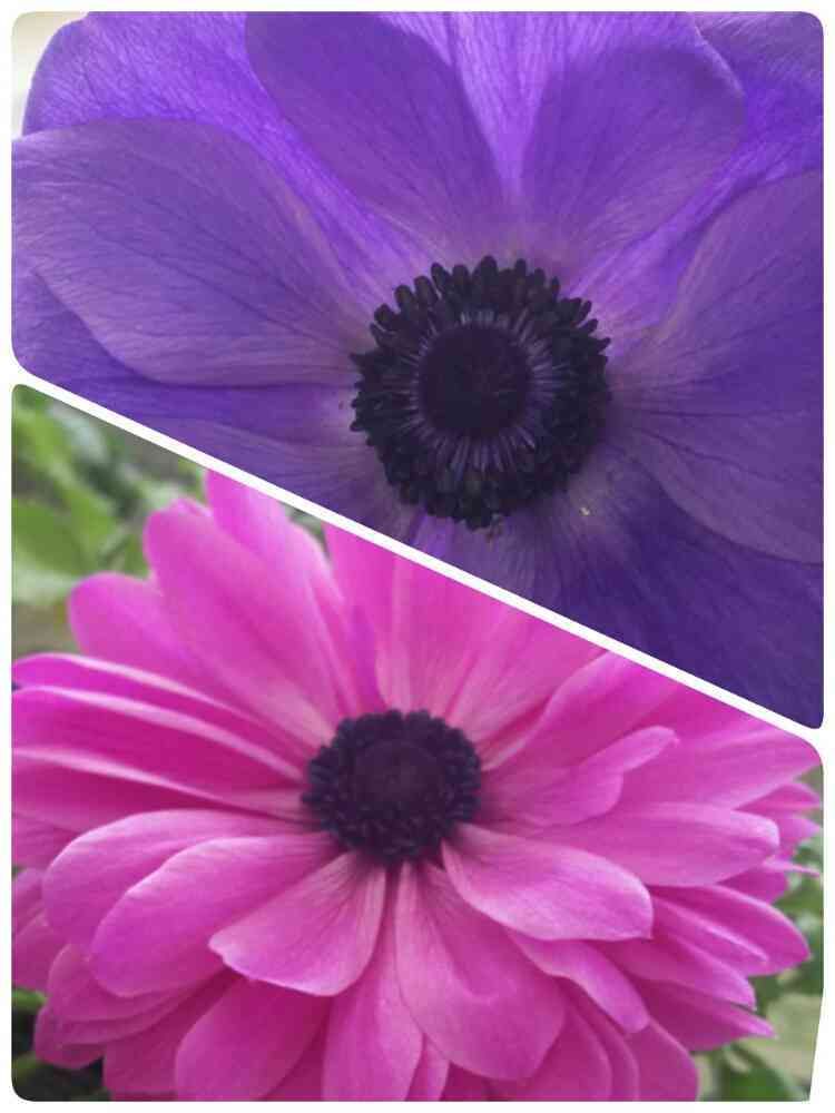 アネモネのパープルは定番、ピンクの八重は可愛くて寄りそう感じ(〃ω〃)