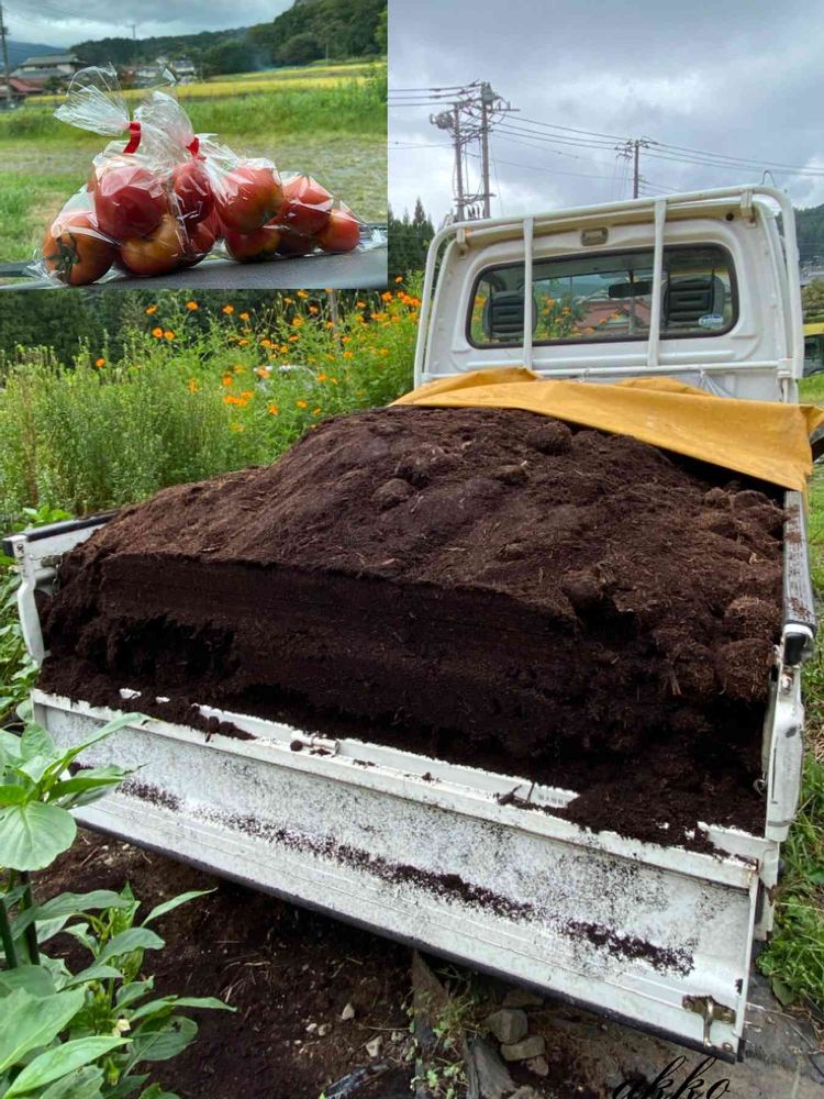 家から15分位のところに、すごく大きなトマト🍅工場で、毎日入れ替わるボット苗の土を半年くらい寝かせて、ただで譲ってくれるんです❣️