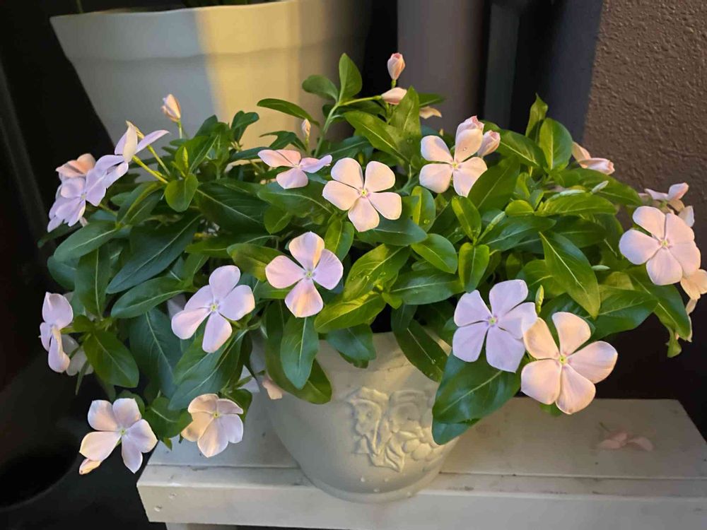 今朝5時のまだ薄暗いベランダのニチニチソウ♡