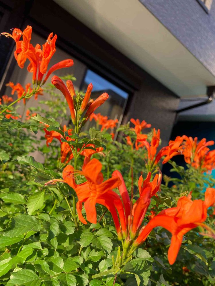 毎年可愛いお花を見せてくれています。緑の葉に鮮やかなオレンジ色の花🧡