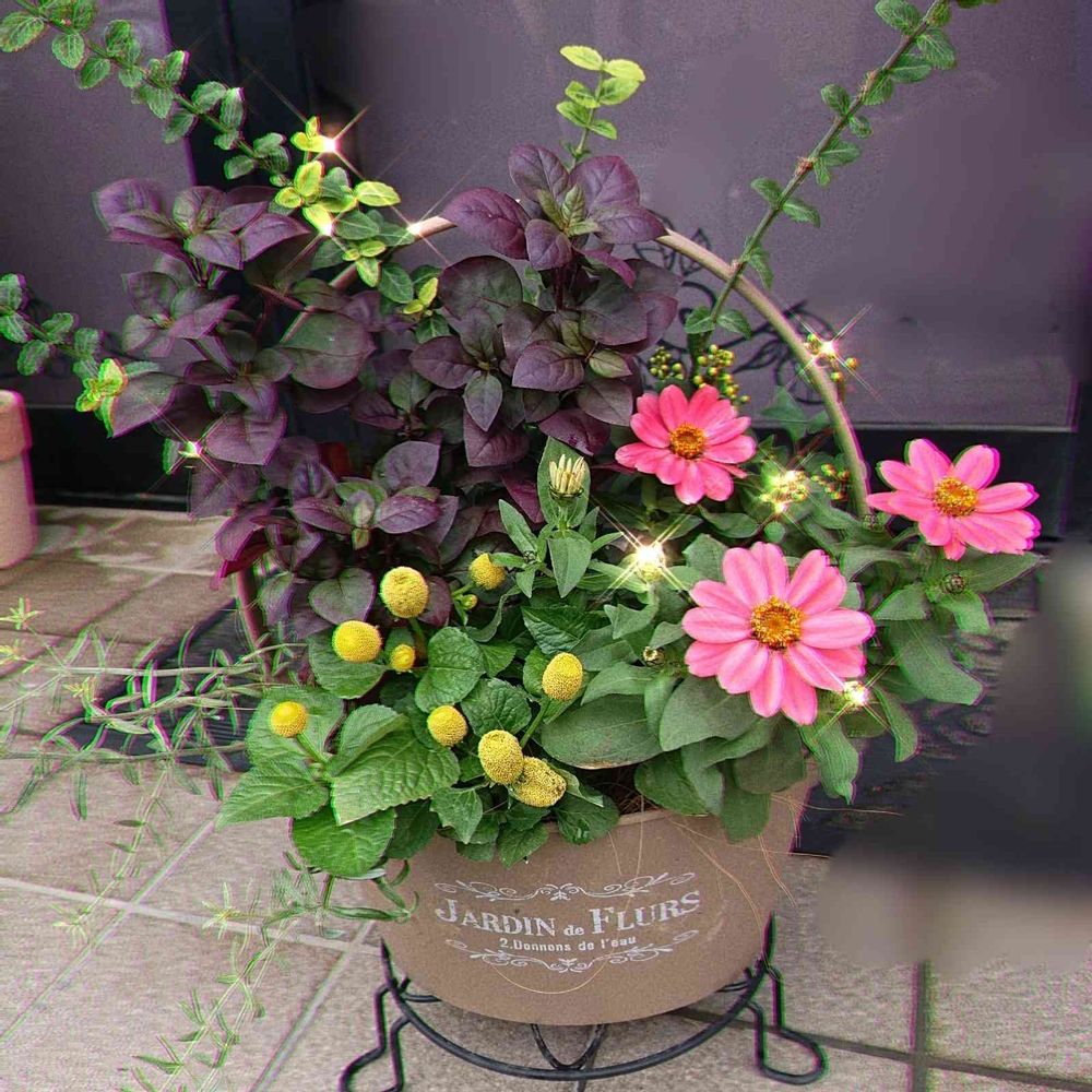 たまごボールの黄色とジニアの真ん中の黄色でまとまってて素敵です💖