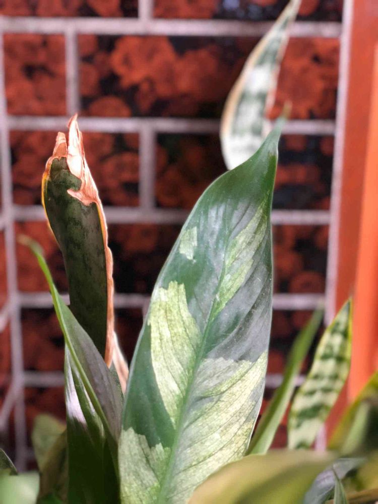 サンスベリアとスパティフィラムの斑入り同化してるのわかりますか?