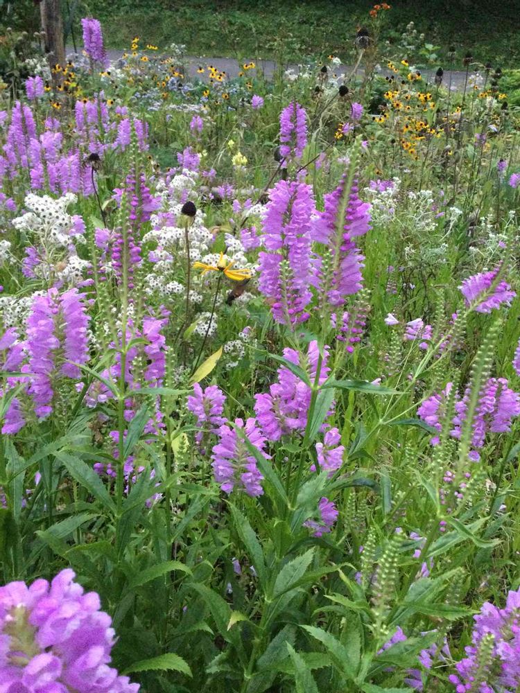 Physostegia virginiana ハナトラノオが満開です。夕方になるとホウジャクさんがご来店です。ハチドリみたいな動きで、可愛いです。スズメガですけどね😁。見ていて飽きません😆