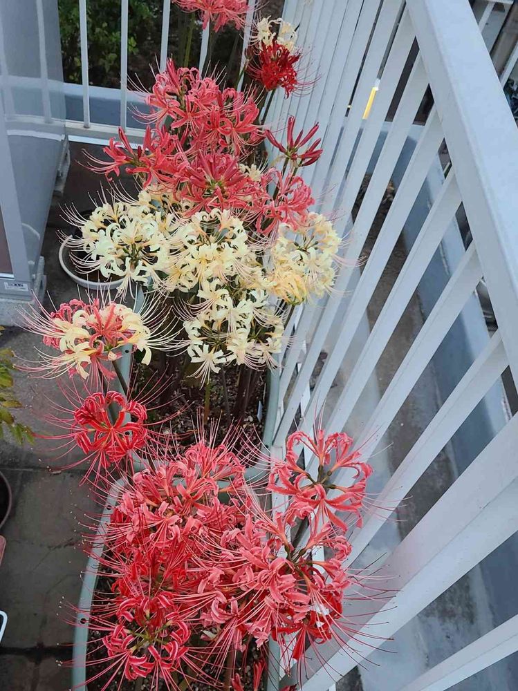 プランターで色とりどりの彼岸花が