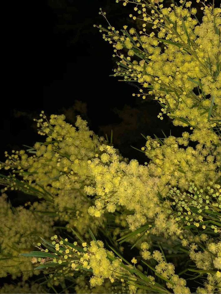 漆黒の夜に浮かび上がったアカシアが金粉を散りばめた様です💛🌿