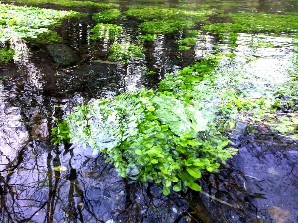 飲んでも良いほど綺麗な雪解け水の中で、青々と育つ水草です。