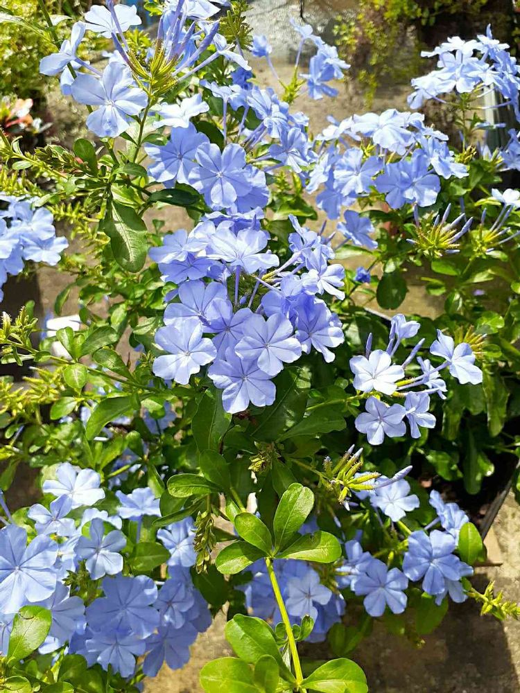 タバコ屋さんの店先で、背の高いルリマツリがあるのよ🌸‼️