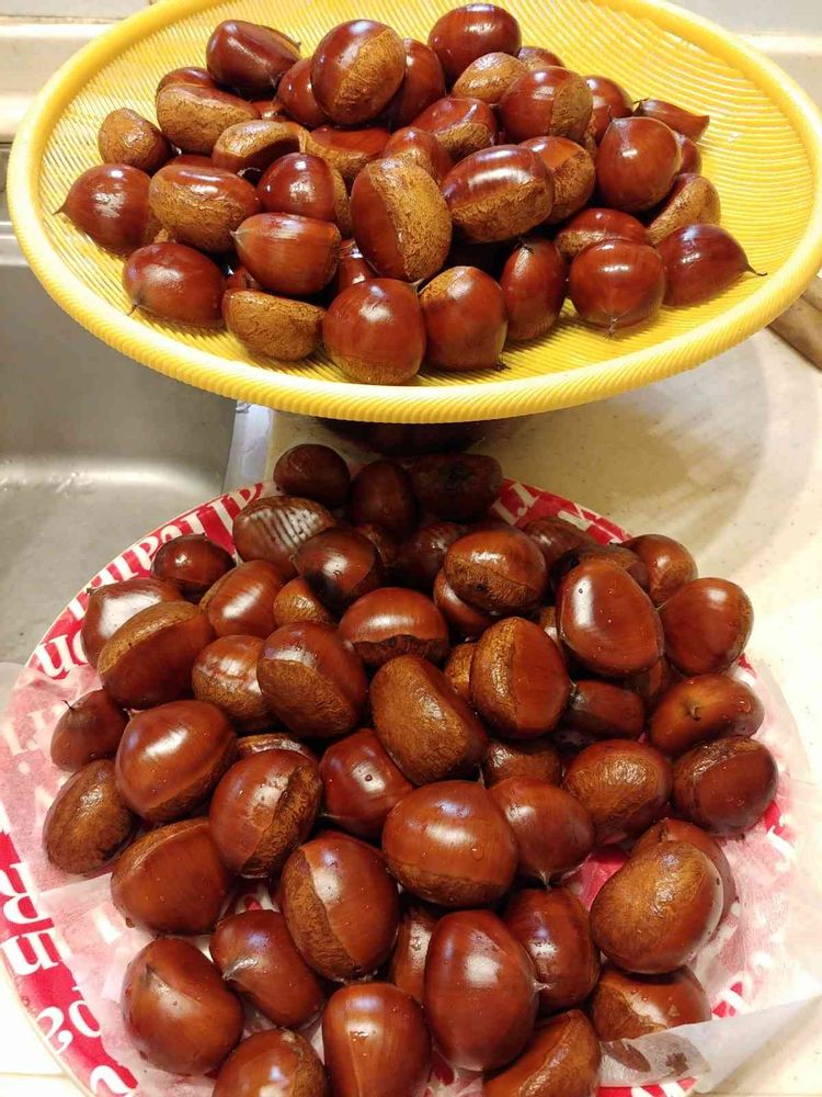 夜中に栗剥いてて第1段さっき終わった😆冷凍したよ😊 残りで渋皮煮を、作ろうかと🤔