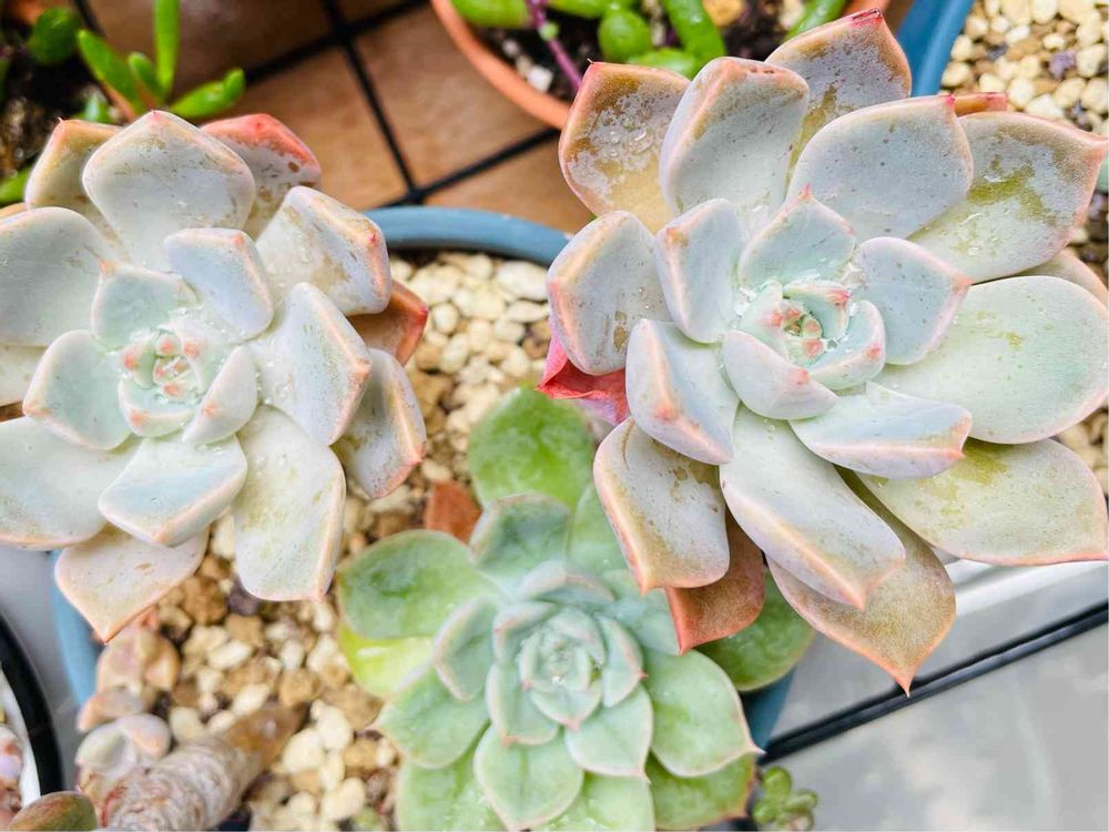 濡れないように非難した多肉たちも吹き込んだ雨で濡れちゃいました💦