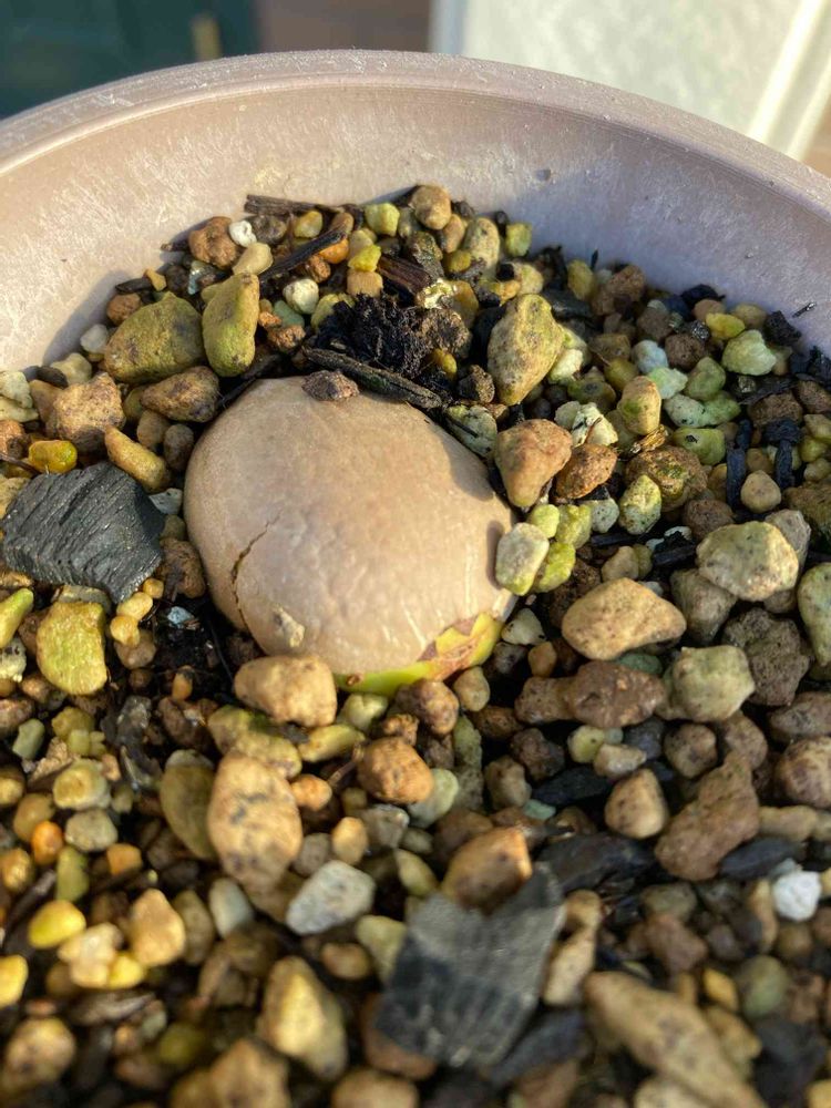 殻の中の本体?が水を吸って大きくなっているように見えるが、まだ芽は出ません。