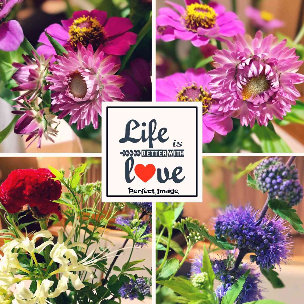 ジニアと切り花と…お部屋が華やかだね🎶🌿