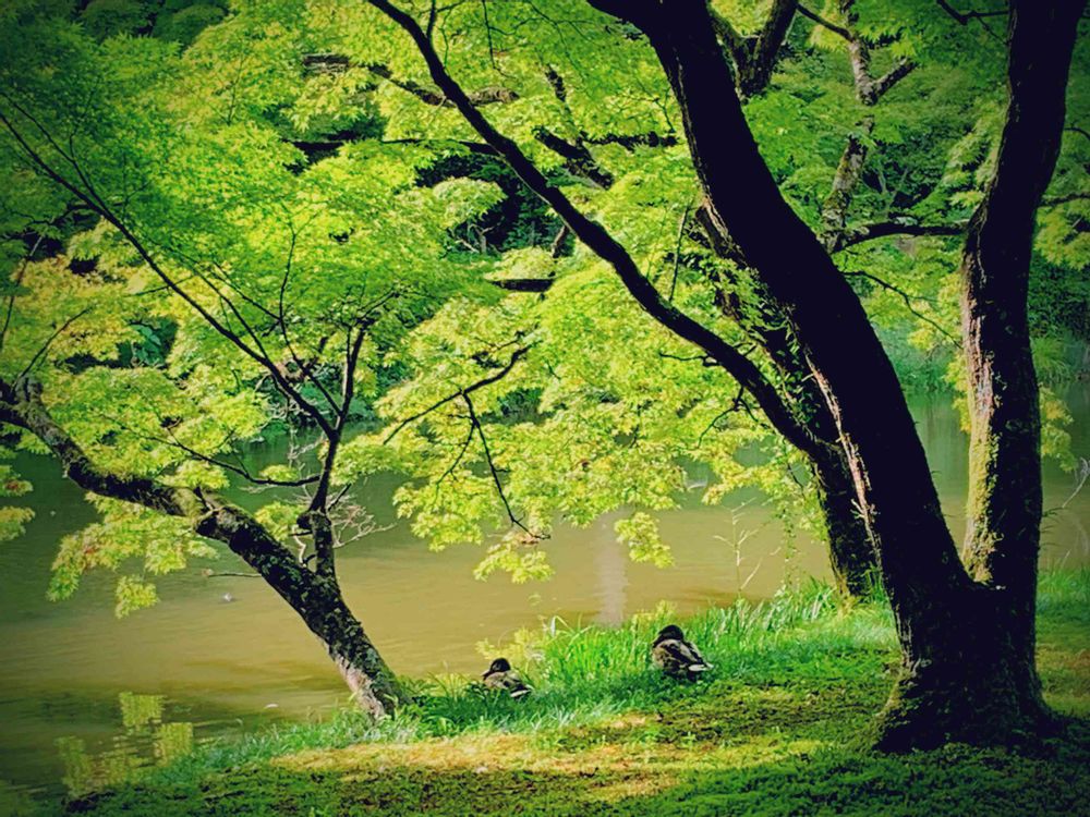 京都植物園の広大な施設内では、このような場所が多く、心も休まります^ ^
