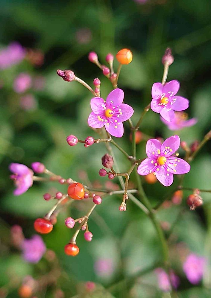 ピンク色のハゼランの花、蕾も実も可愛いです💕