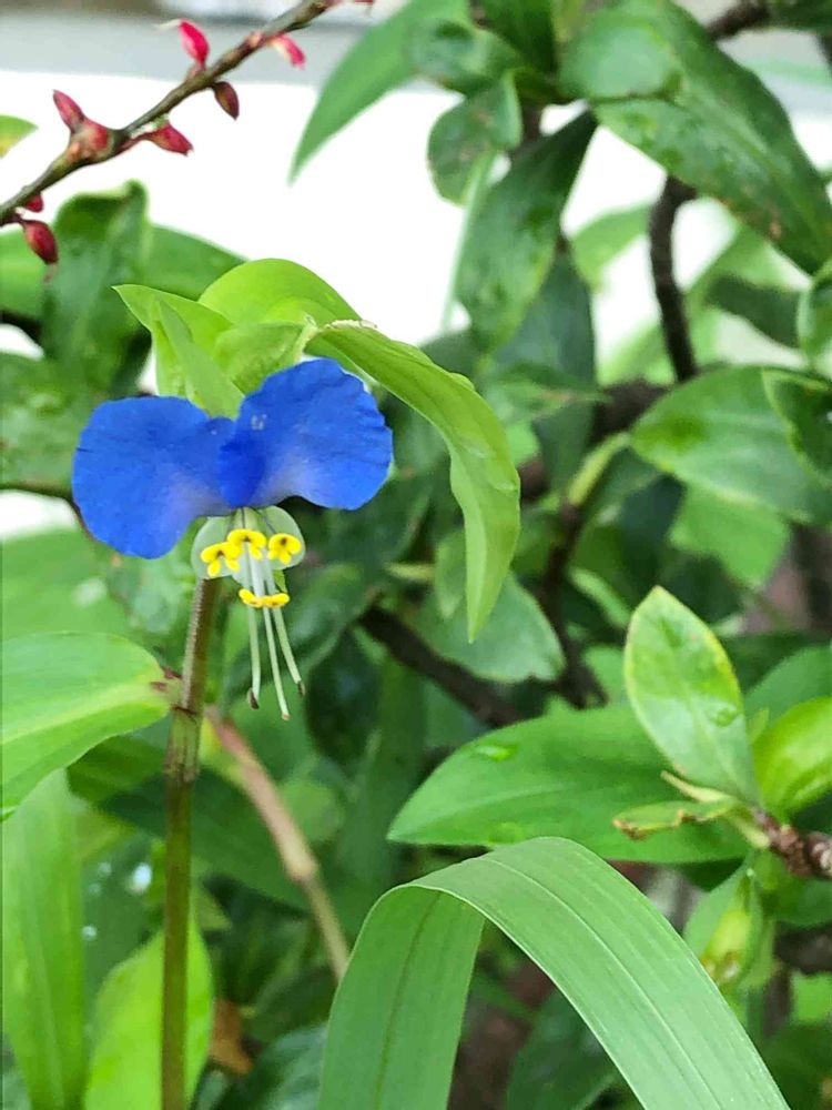 令和3年9月19日(日)晴れ☀️ 😅ツユクサ 小さいモノpicはスマホが?私が?苦手だから……..沈丁花と高さを競うツユクサ😆恥ずかしいから今日は毟るぞ〜