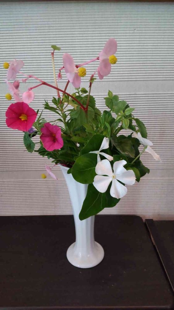 白い一輪挿しに合ってて爽やかな感じになりました😄