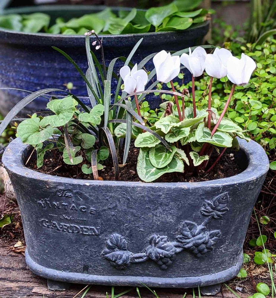 真っ白な花と葉っぱに惹かれて、ガーデンシクラメンを早めにゲット🤍💚