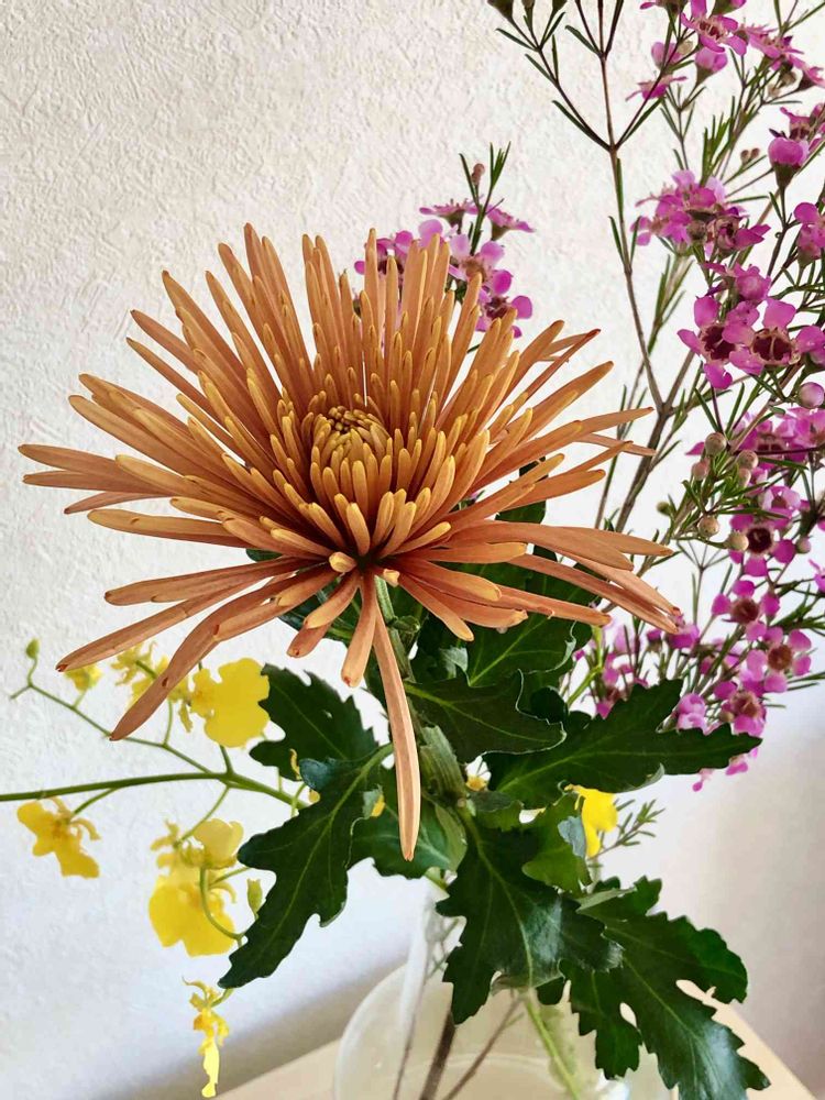 リビングのお花は菊をメインに。今年も新宿御苑の菊が楽しみです🥰