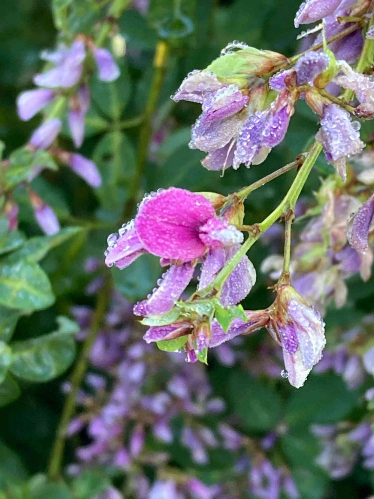 綺麗な色ですね❢雨の雫が幻想的です。💗💖💜