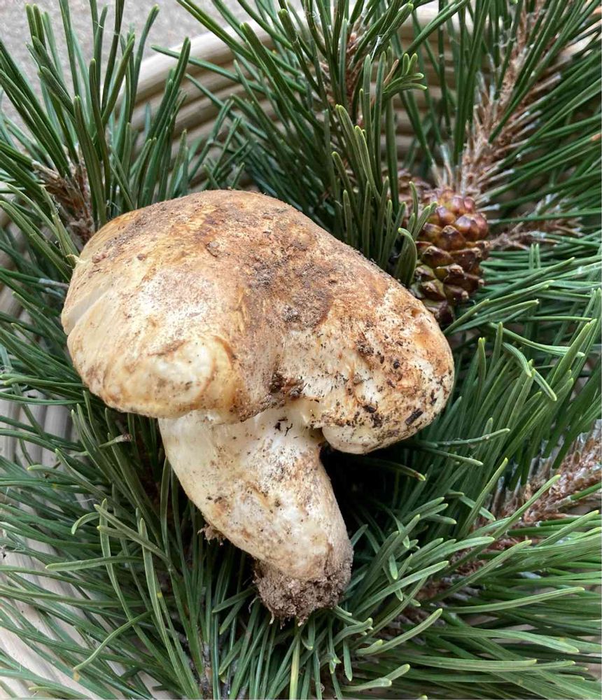 見つけました〜❗️ 友達と早朝から松林の中をあちこち2時間ぐらいかけて探し、コロラド産松茸1個を収穫。友達も1個見つかって二人とも大喜び。香りも良く松茸ご飯にしました😋🍚