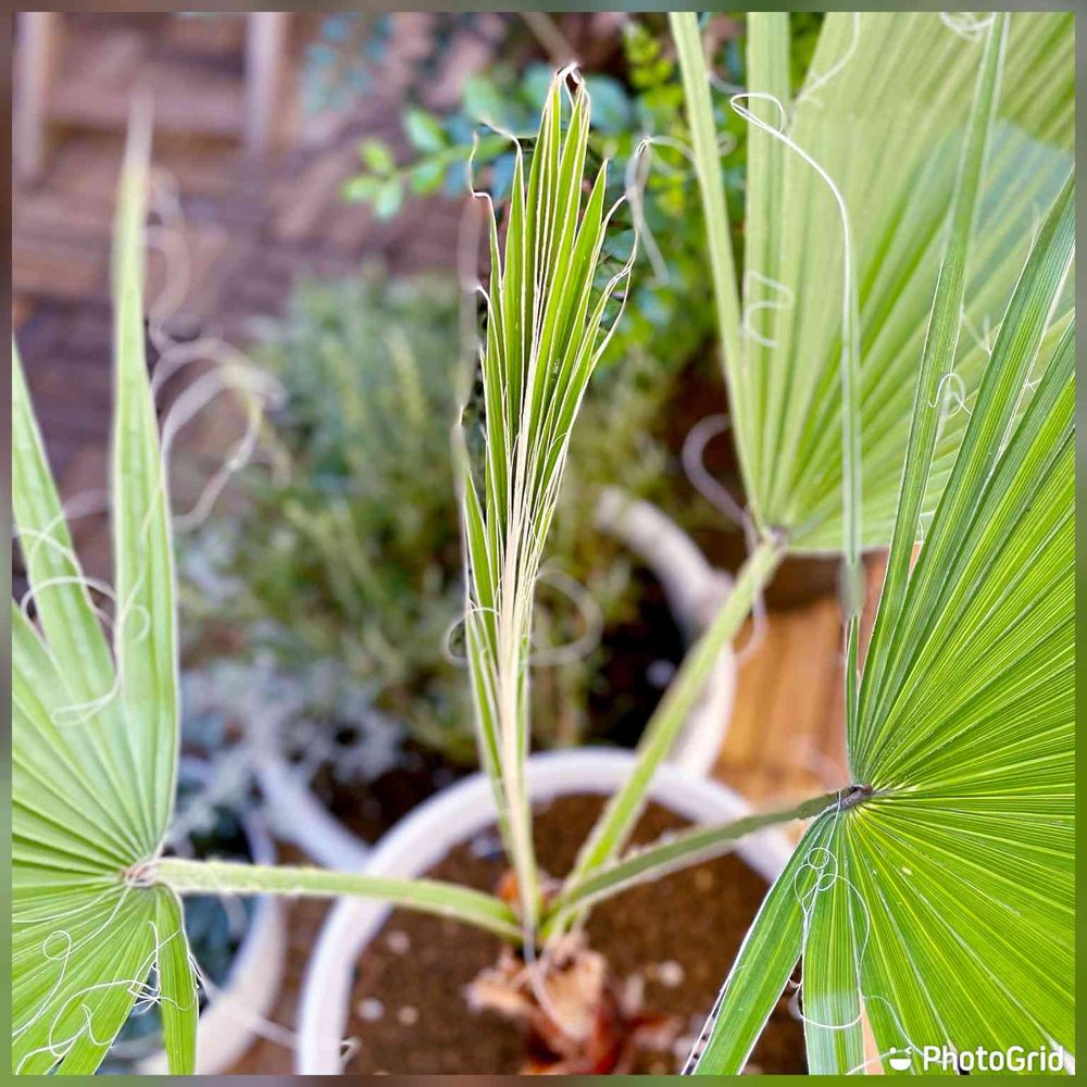 つい最近までツノのようだったワシントンヤシの新芽が開いてきました〜🌿