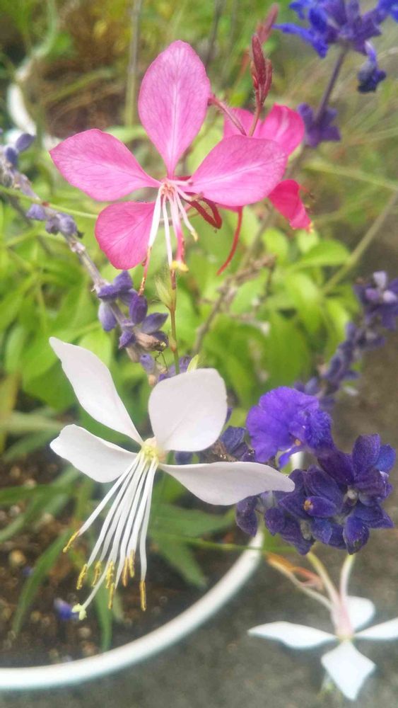 寄せ植えにしているガウラの白とピンクがやっと咲き揃いました💗🤍💗🤍